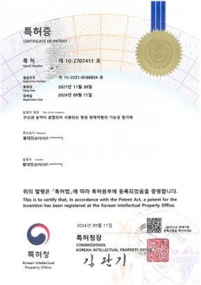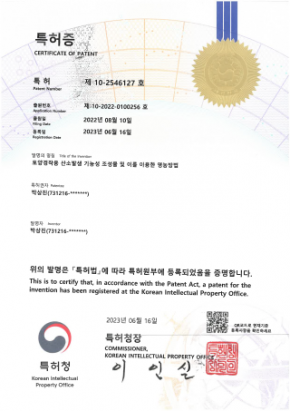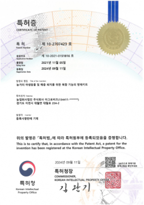 농업문야 전문 연구 결과로 다수의 특허를 보유하고 있으며,