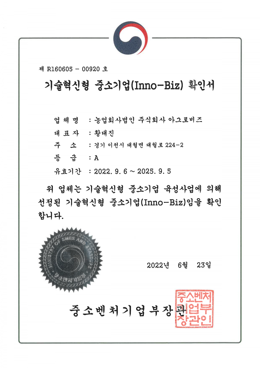 특허증(토양경작용 산소발생 기능성 조성물 및 ...