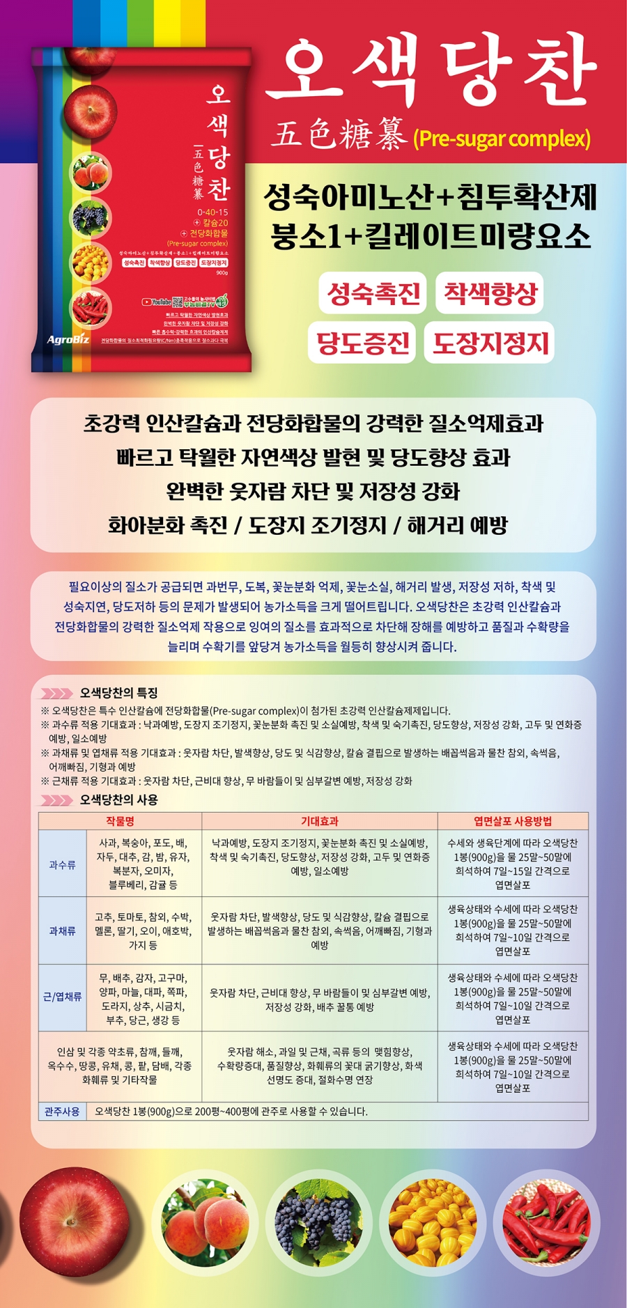오색당찬은 특수 전당화합물(Pre-sugar complex)이 첨가된 초강력 인산칼슘제제입니다.