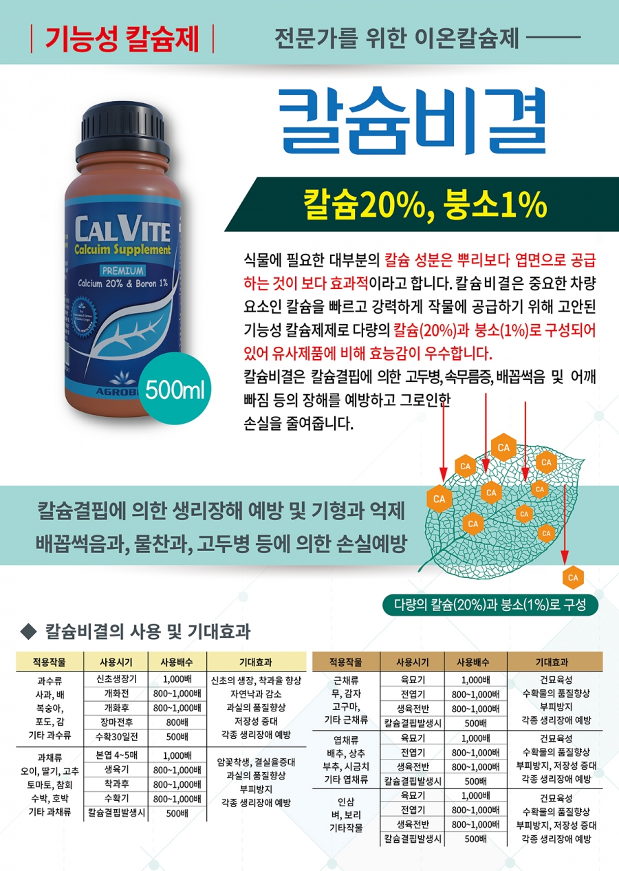 로 다량의 칼슘(20%)과 붕소(1%)로 구성되어 있어
