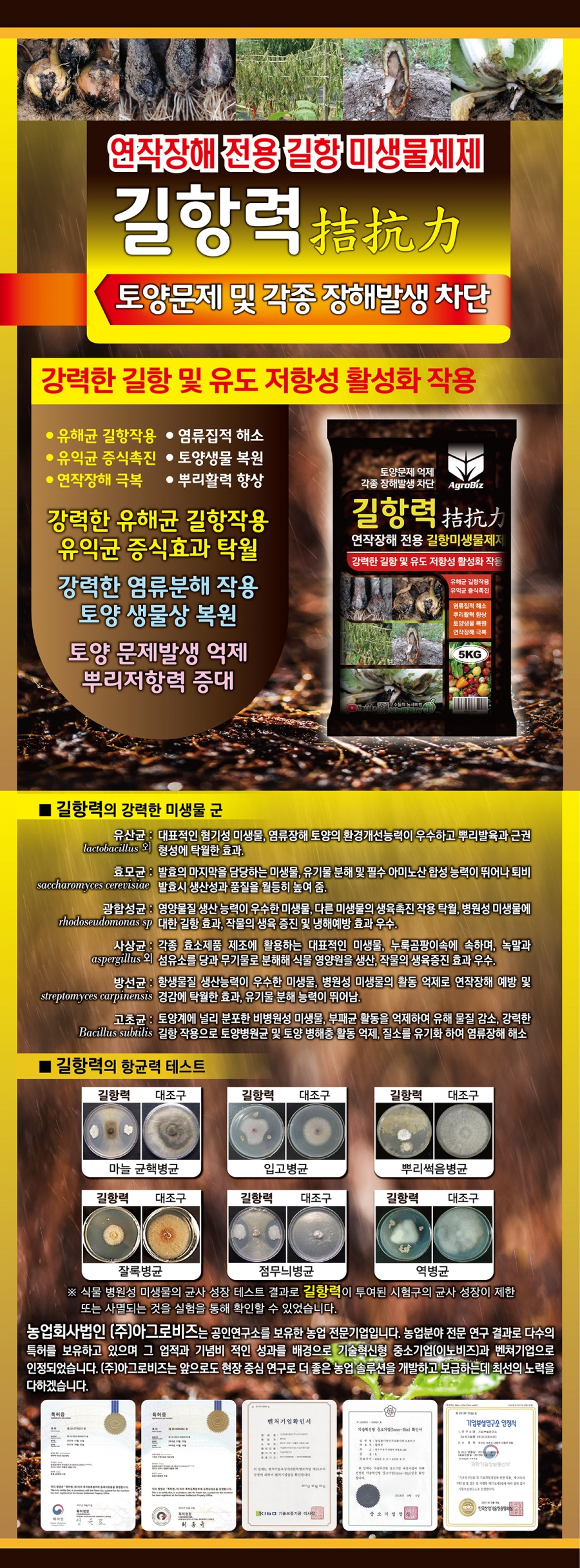토양 생물상 복원 / 토양 문제발생 억제 / 뿌리저항력 증대