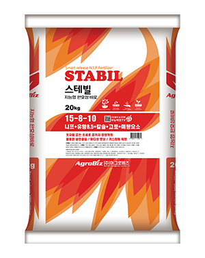 스테빌은 환경적 영향으로 인한 비분의 과잉흡수와 용탈을 막아 작물의 균형잡힌 성장을 유도하고 생육단계별 적정초세를 유지시켜 수확물의 손실을 막고 수량과 품질을 극대화하며 비분의 효율적 활용성을 높여 비효 지속기간을 늘릴 수 있도록 고안된 밑거름용 기능성 복합 무기질 비료입니다.